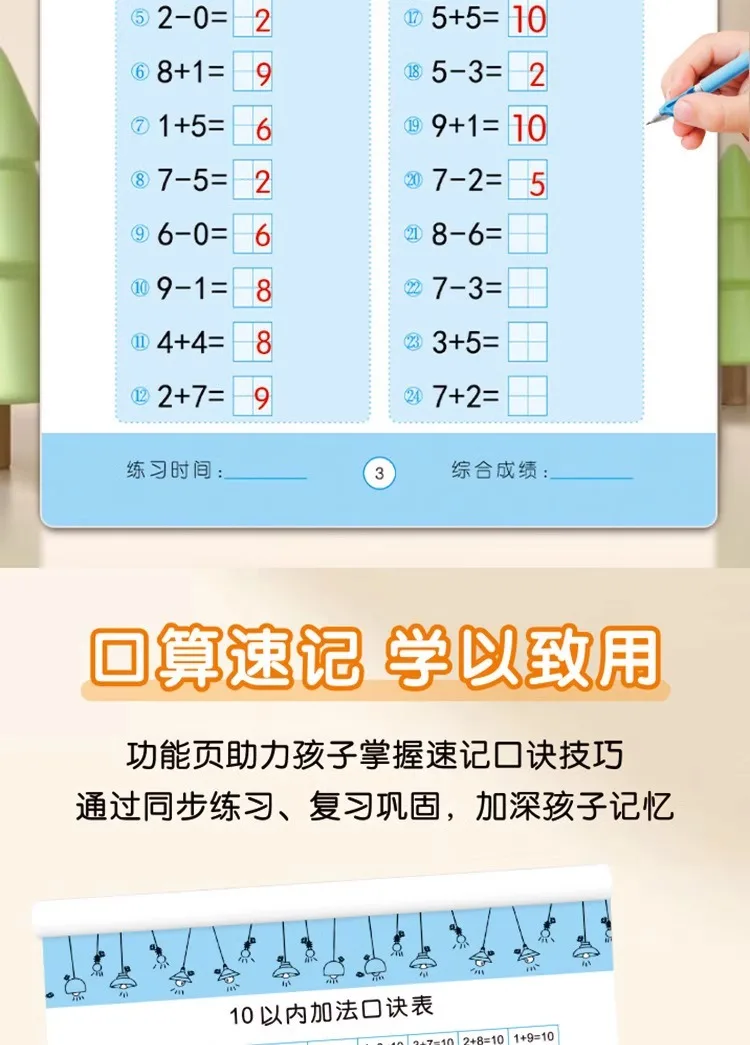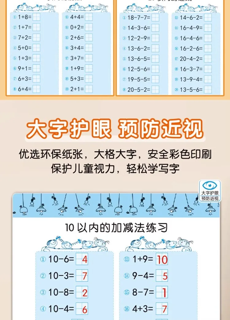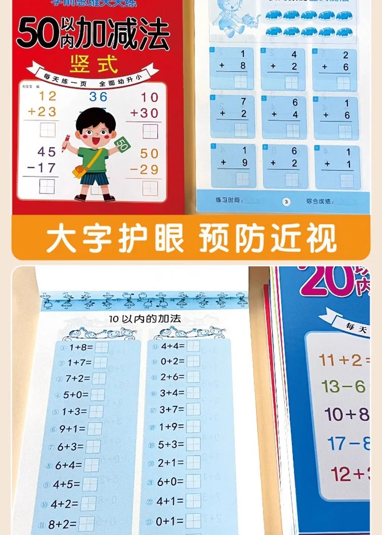 80 Pages Children Addition and Subtraction Book Learning Mathematics Textbook Handwritten Arithmetic Exercise Books for Kid 2-5